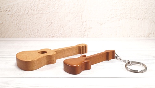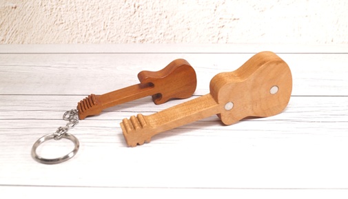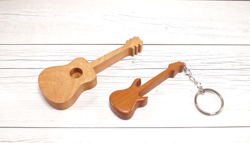 木製のギターマグネット(アコギ)とキーホルダー(エレキ)ですが、シンプルな作りがとても素敵です。