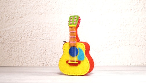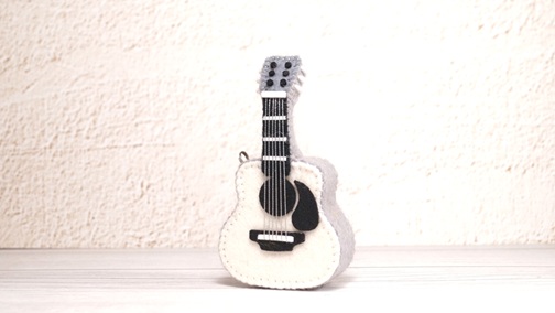 初代ギターマスコットはボディ、ネック、ヘッドの芯材を立体的に組み立てる作業とフェルトを縫う作業があり、手間暇がかかります。