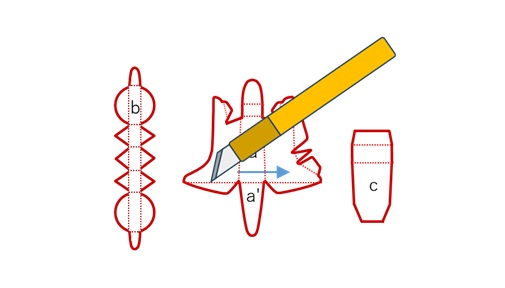 (felmodelの)マスコット制作では紙パーツの折り目を「刃の背側」でなぞって折りやすくするために使用しています。