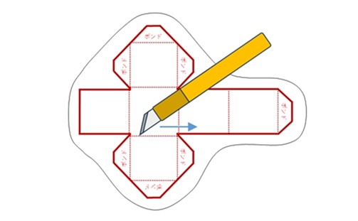 このデザインナイフは刃先が長いので折り目をなぞるのに使いやすいです。